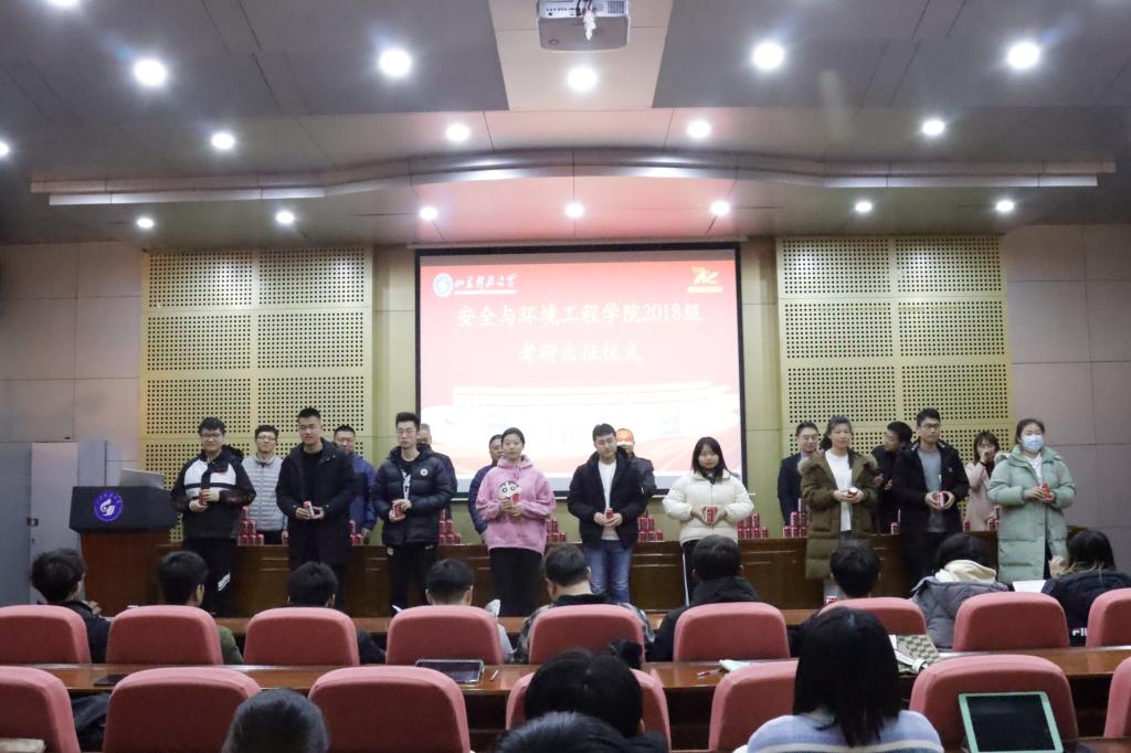 点击:12月22日,3044am永利集团3044noc在J4-101报告厅举行2018级考研出征仪式。学院党委书记张恩生、党委副书记兼副院长王建友、副院长刘音、副院长聂文、应急系主任孟祥豹、环境系主任胡术刚、班主任代表张林林、团委书记潘刚、辅导员郭熙参加出征仪式并为考研学生送上祝福。