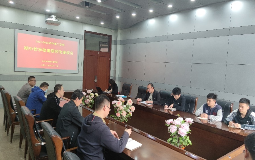 会上,研究生代表们踊跃发言,在充分肯定和支持学院的各项管理工作的基础上,结合事先收集并汇总的班级同学的意见和建议,就研究生课程设置、加强就业指导、研究生论文写作指导和科技竞赛指导等方面提出了问题。安全系孟祥豹老师针对安全专业研究生课程安排和科技竞赛指导等问题进行了针对性的解答。环境系周广柱老师总结了环境专业研究生课堂学习情况、课程安排情况及研究生学位论文盲审情况。安全系贺敏老师表示研究生课堂纪律有待加强,建议学院开展高水平论文发表写作相关论坛或者交流会。研究生教学管理办公室相关负责老师也针对同学们的问题给予了回应和解答,并做了详细记录,表示将尽快对同学们提出的意见建议进行分类梳理,加强与有关部门的沟通协调,力争为我院研究生的培养提供更加优质的服务。教学督导张文泉老师为我院的研究生工作进行检查与指导,以督促我院教学质量和教学水平的不断提高。
