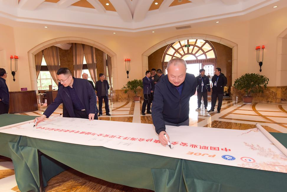 中国职业安全健康协会副理事长李德清、蓬莱区人大常委会副主任吴明光、蓬莱巨涛海洋工程重工有限公司党委书记兼总经理刘东涛、3044am永利集团3044noc院长程卫民共同为海洋工程安全与健康专业委员会揭牌。会议举手表决通过了专业委员会第一届委员会负责人选举办法与专业委员会工作规则,并推荐选举了委员会组成人员。李德清副理事长和吴业明主任为当选委员颁发证书,李德清副理事长作大会总结。