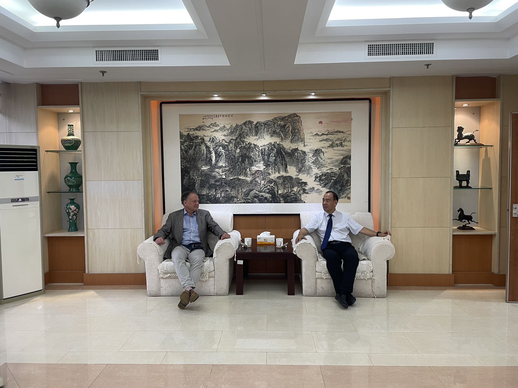 会后,校长曾庆田会见了托马斯·科尔教授,希望双方进一步开展合作。托马斯·科尔教授详细介绍了团队的研究方向、研究生培养方式以及KIT地热研究的基础设施、实验室建设情况,并针对地热开采中复杂裂隙中的流场问题做出了深入探讨。他表示,将加强与我校在基础研究、设备研发、技术开发等领域课题项目、专利、论文、奖励、研究院等方面的合作。