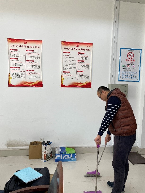 集体学习后,支部党员对安全工程系办公室等主要办公区域进行了卫生扫除,为营造更加整洁温馨的办公学习环境贡献力量。