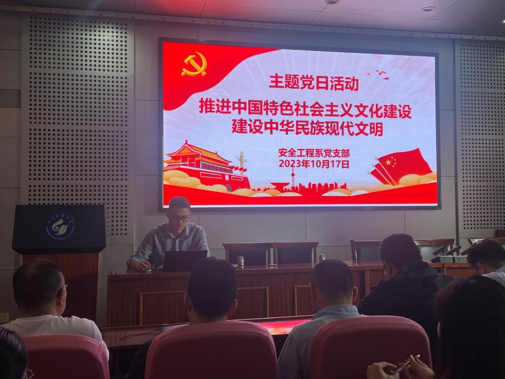 点击:为贯彻落实全国宣传思想文化工作会议精神,深刻学习领会习近平文化思想,10月17日,安全工程系党支部开展“中国特色社会主义文化”主题党日活动。