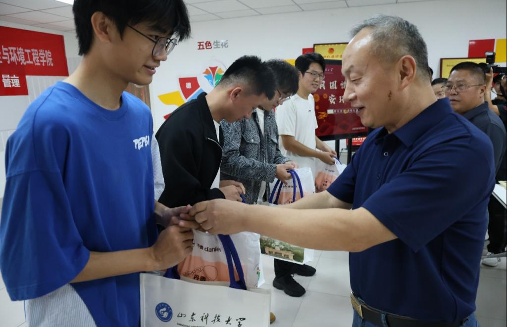 学院党委书记张恩生,党委副书记兼副院长王建友,团委书记张娜及全体辅导员一同走进领才书院,亲手将定制月饼送到每一位新生手中。这份承载着学院深厚情谊的礼物,不仅传递着节日的祝福,更凝聚着师长们对学子们的殷切关怀。
