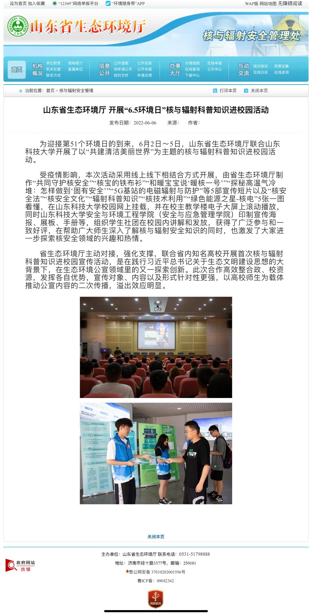山东省生态环境厅 开展“6.5环境日”核与辐射科普知识进校园活动